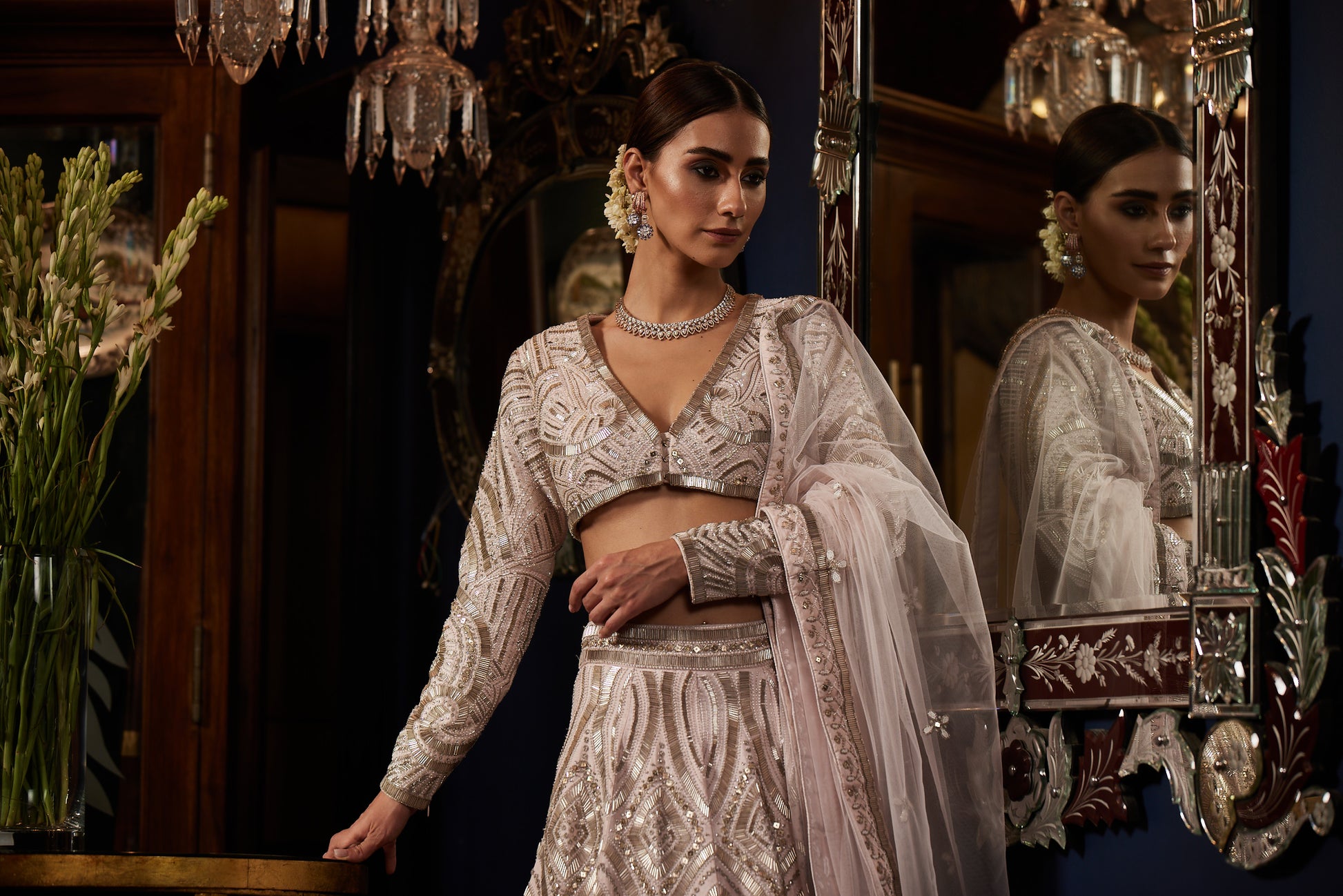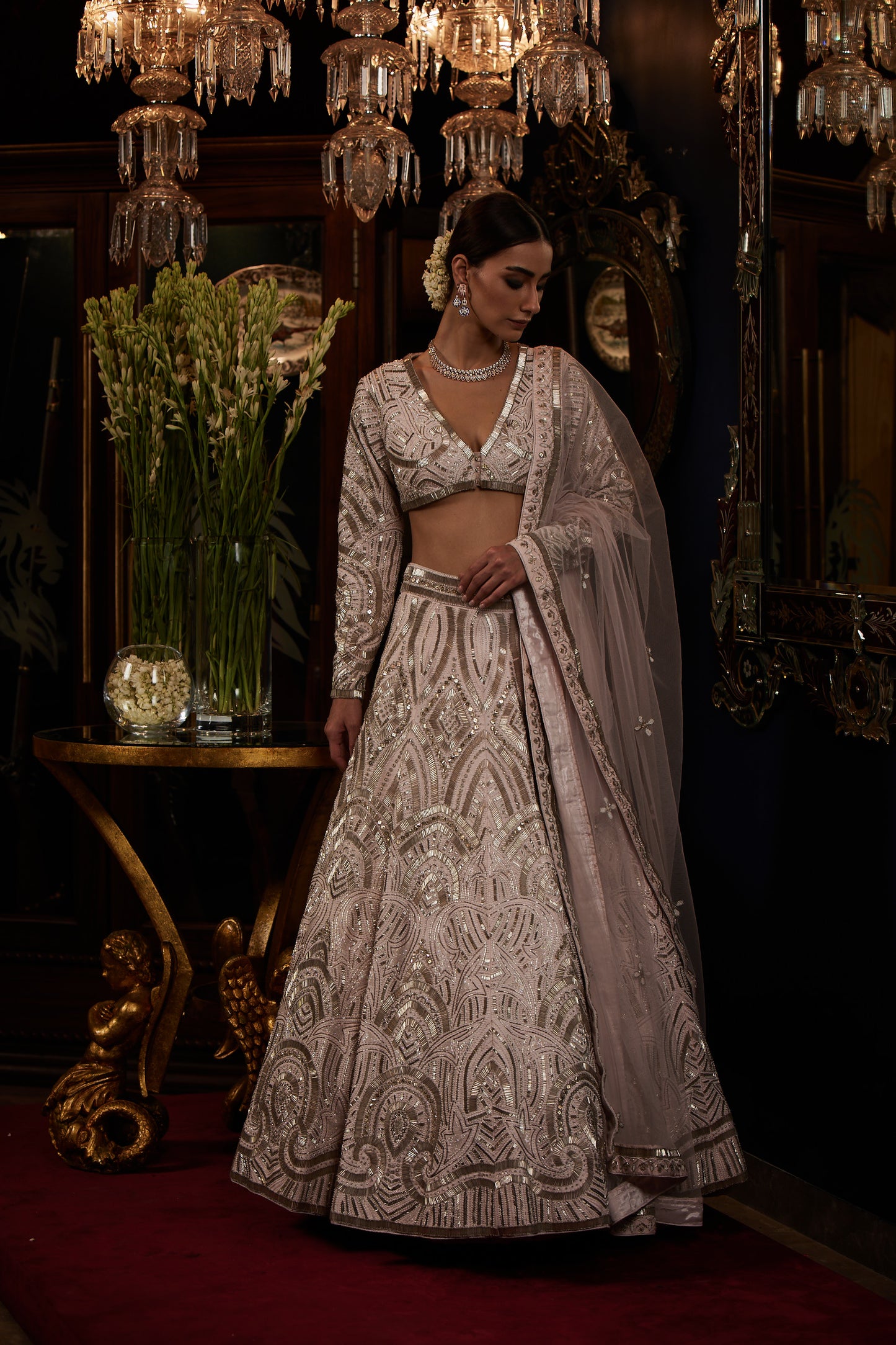 Baby Pink & Silver fully embellished Lehenga, Blouse & Dupatta